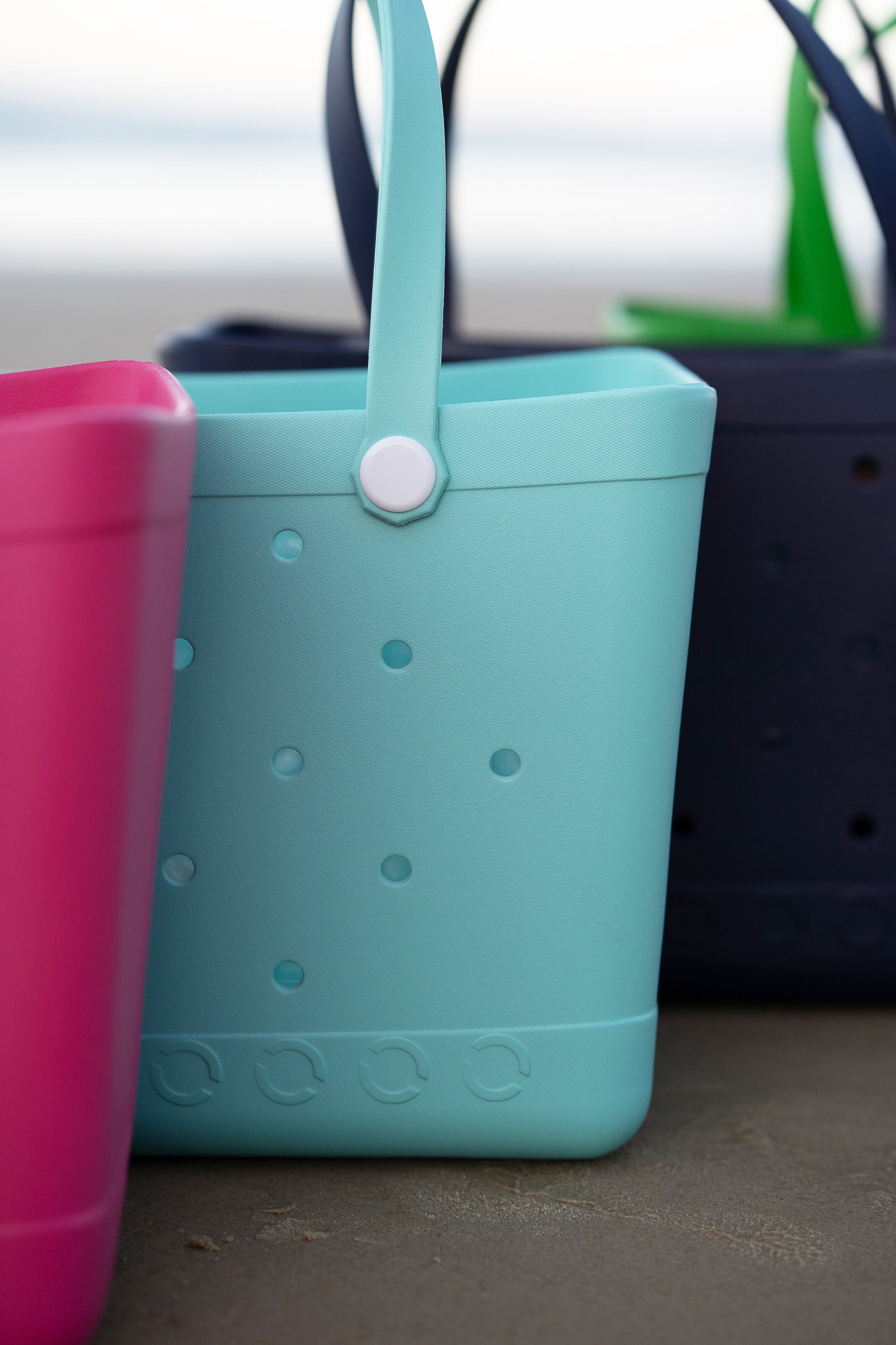 These bags are generously oversized and made from thick, premium EVA that won’t warp, crack or collapse like cheaper alternatives. They cost more to make and ship - but it’s worth it to deliver a tote that’s beautiful, durable, and made to last.